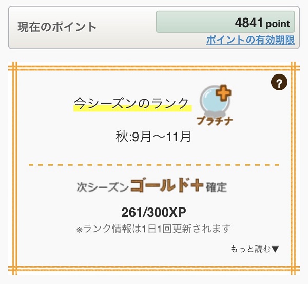 こちらは9月の残高ポイントが4,106ptで、10月は4,841ptになりました。